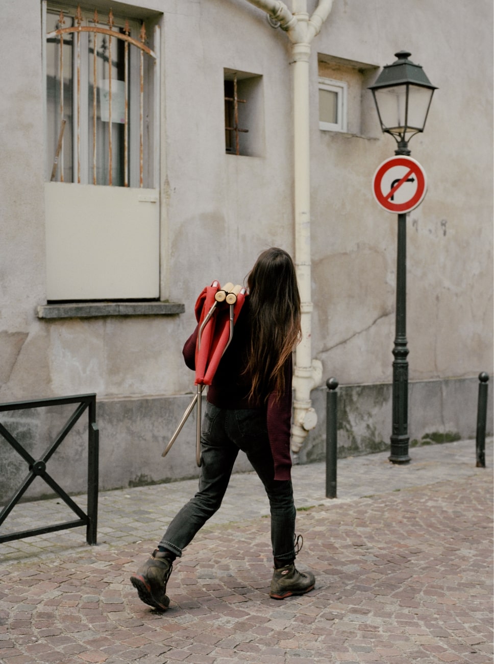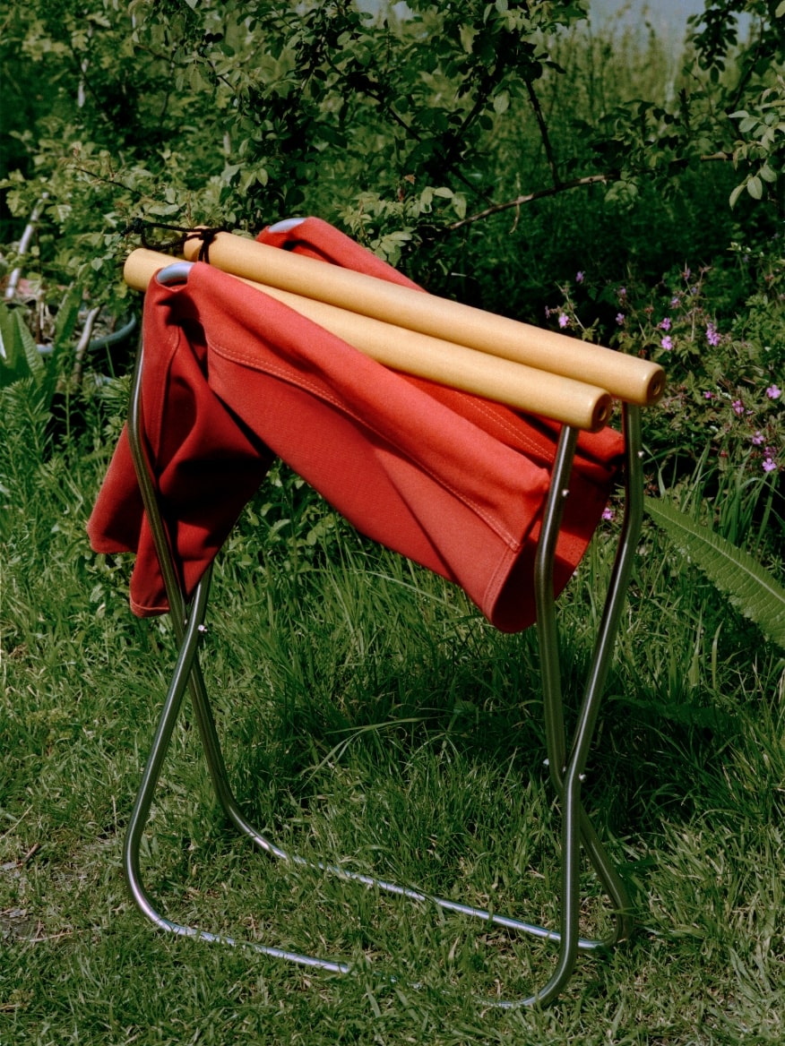 Light and compact, Nychair X 80 can be placed on a variety of grounds. The curved shape of its legs keeps it stable even on small pebbles or grass outdoors. With a wide seating surface, Nychair X 80 offers extra comfort to Masami-Charlotte Lavault when she’s taking a break. The seat was designed to be slightly tilted backwards, so that one naturally leans their back against the chair when seated. The unique fabric is thick