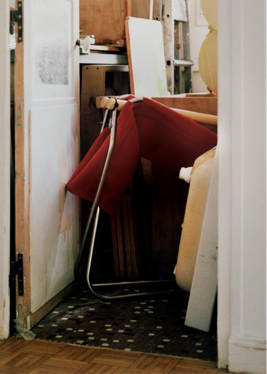 Nychair X 80 fits with the unfinished interior of Masami-Charlotte’s studio, which is currently under renovation. Its bright terracotta fabric adds colour to the white room. The simplicity of its design means that it is also likely to fit into the studio once the renovation is completed.